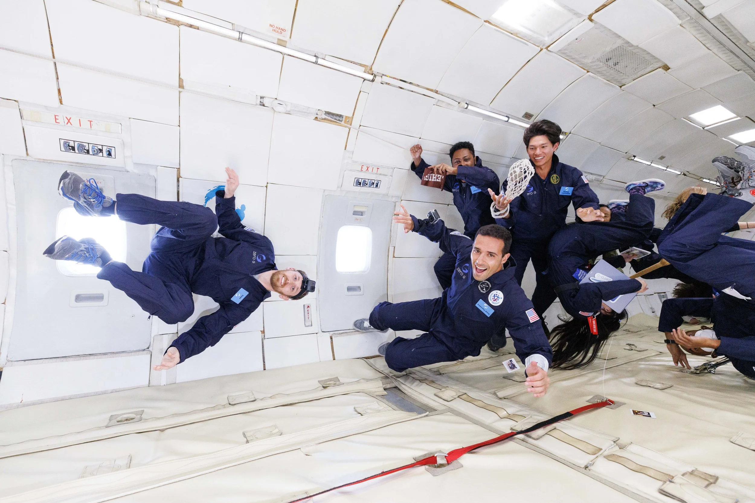 Horizon 2022 fliers float in zero gravity. Credit: Steve Boxall / ZERO-G