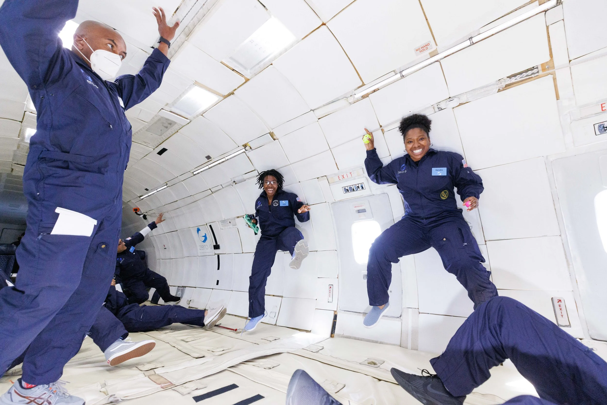 Kendra Rivers floats in zero gravity. Credit: Steve Boxall / ZERO-G