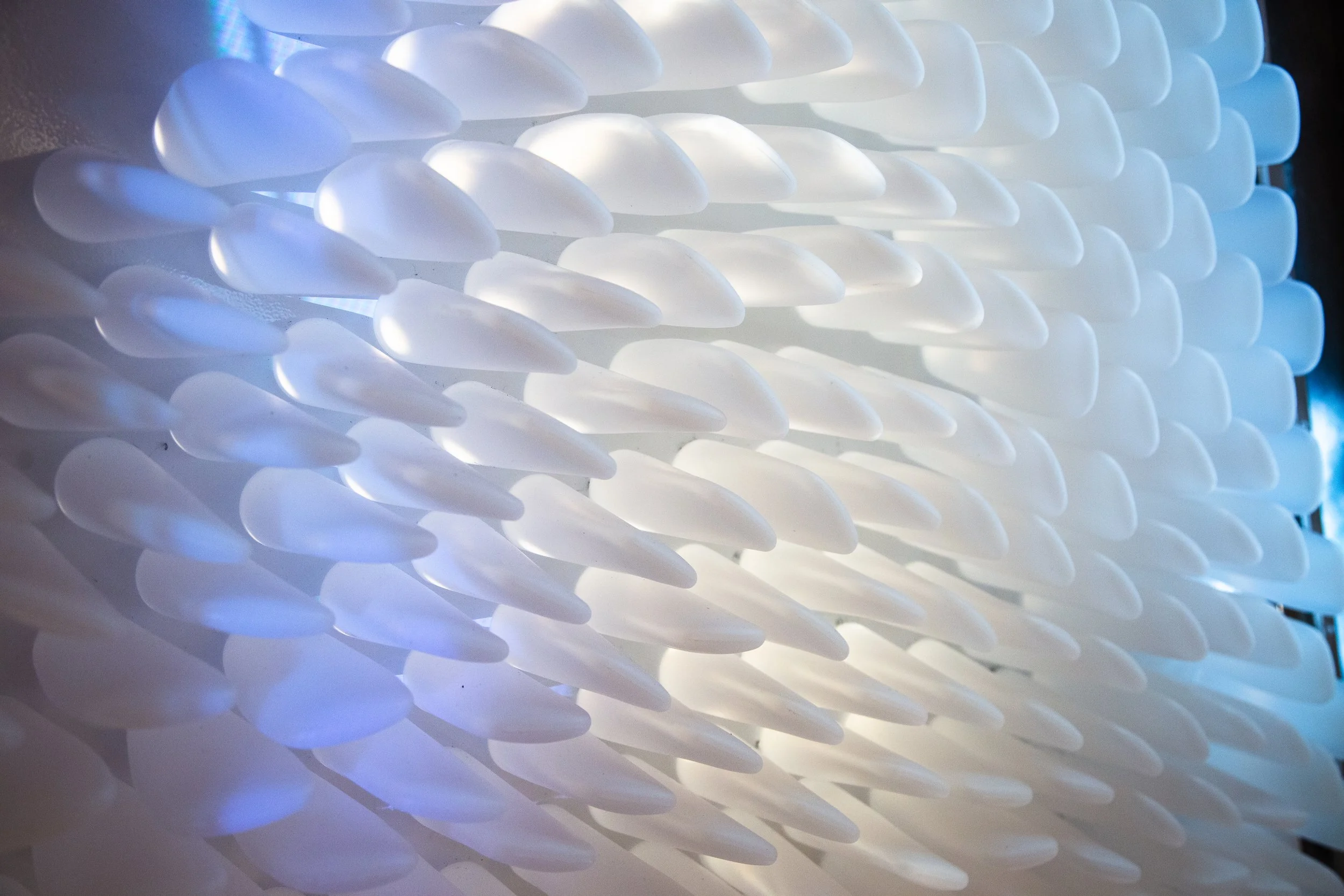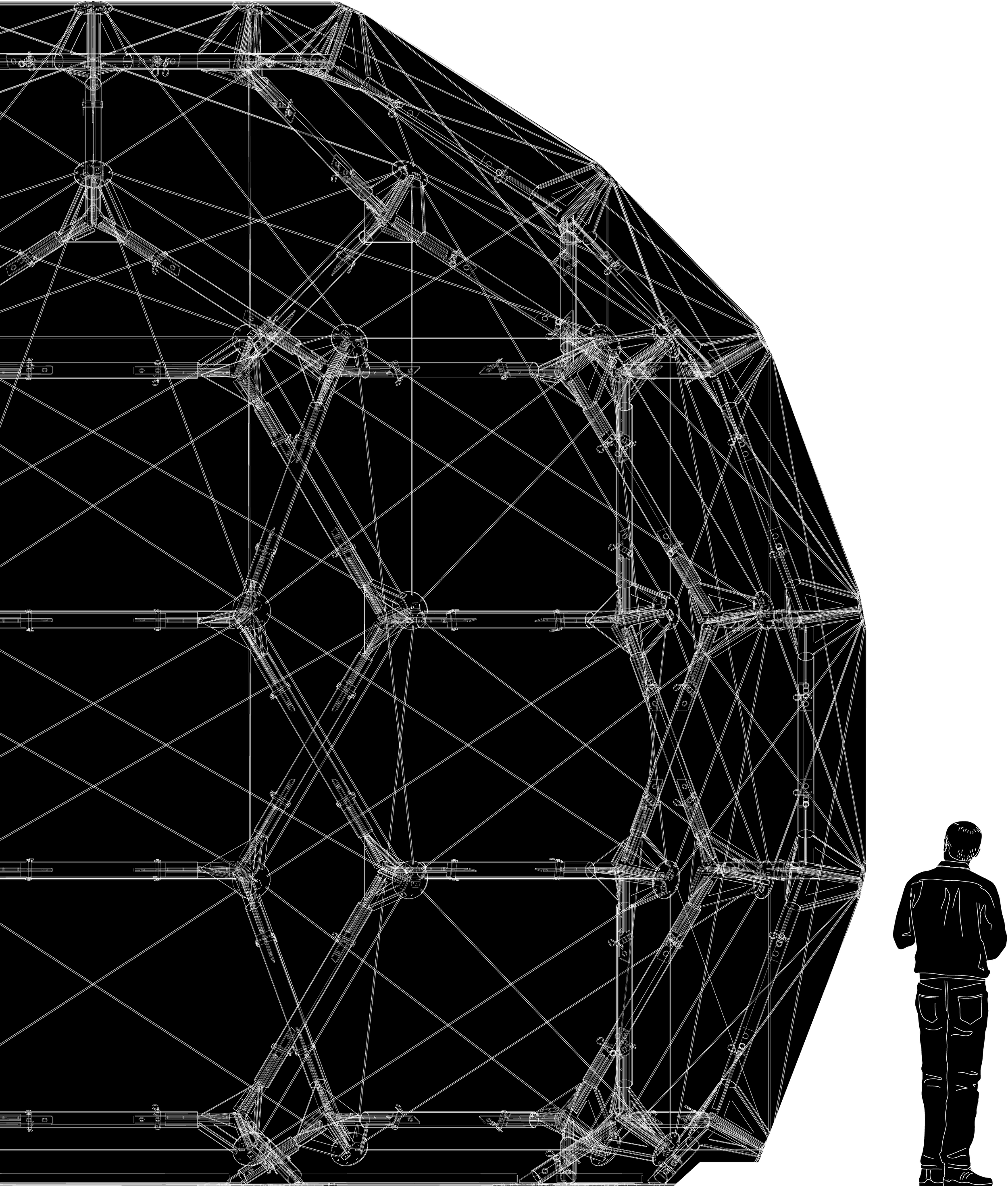 This pavilion model features real, microgravity-tested elements but uses different structural building materials for the outer shell than what will ultimately be used in the vacuum of space.