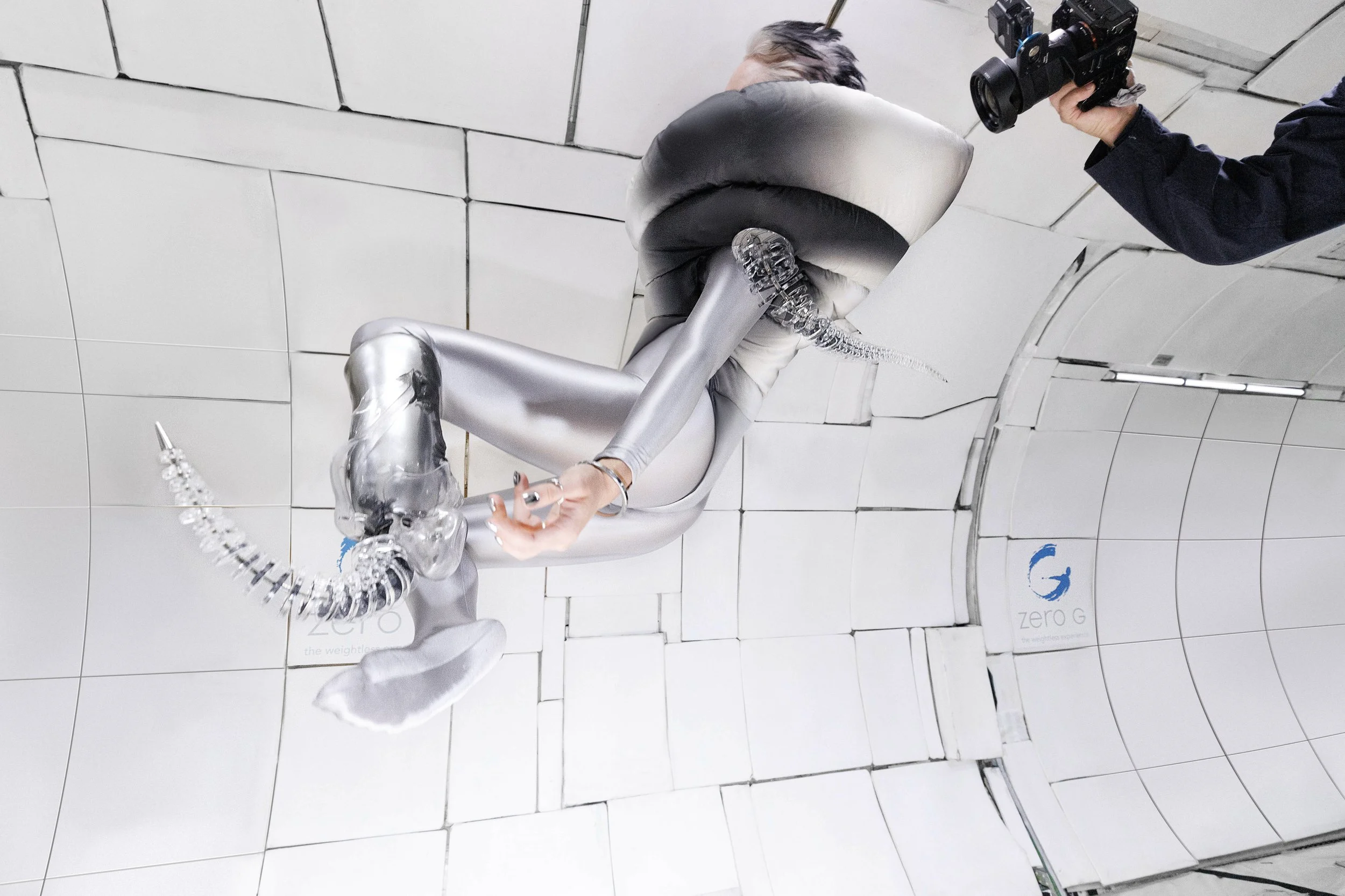 Viktoria Modesta floats in zero gravity wearing a micro gravity adapted prosthesis. Credit: Steve Boxall / ZERO-G
