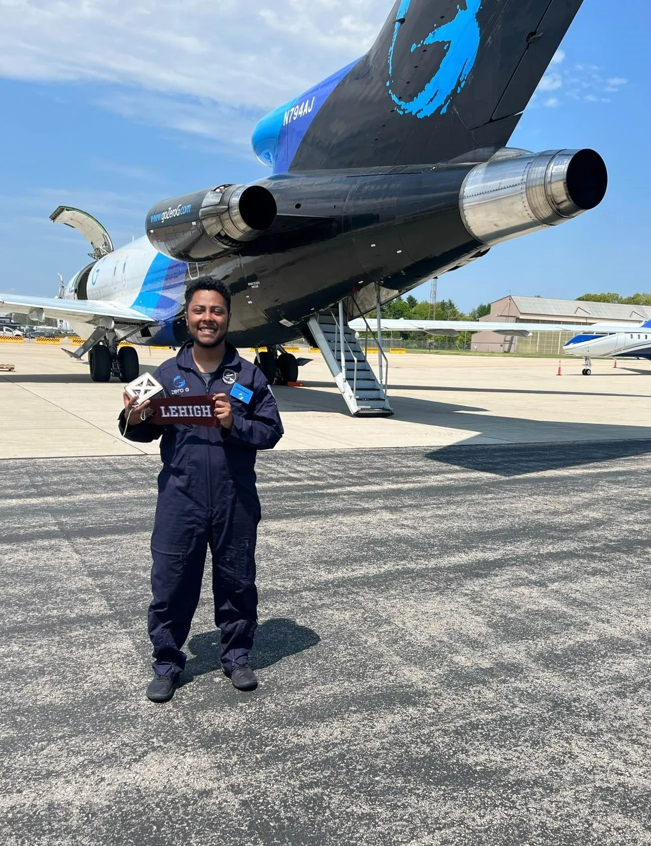 Zemichael Gebeyehu stands in front of ZeroG Corp’s G-Force One vessel. Credit: Zemichael Gebeyehu